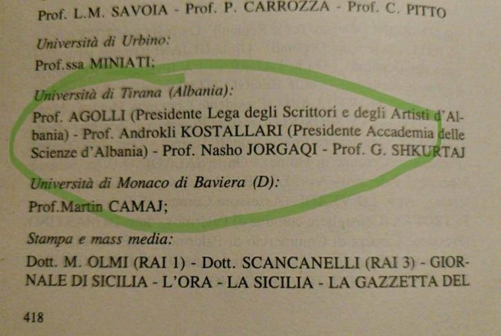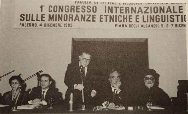 Një ngjarje e dytë që grupi kujton si të rëndësishme, ish një konferencë lapidare për gjuhën dhe kulturën në vitin 1985 në Universitetin e Palermos në të cilën një numër i madh studiuesish nga Shqipëria patën marrë pjesë. Miqtë nga grupi Shqiponjat, që me atë rast patën shkuar për t’u takuar dhe dhënë një koncert, kujtojnë Kostallarin, Agollin, Jorgaqin, Shkurtajn. Me Jorgaqin dhe Shkurtajn, miqësitë e arbëreshëve kanë qenë më të thella, dhe vazhduan edhe pas 1998-ës, kur shumë shqiptarë intelektualë nevojtarë u distancuan natyrshëm, pasi kishin arritur një lloj stabilizimi ekonomik, e nuk u duhej më të ushqenin aktivisht miqësitë me arbëreshët që patën qenë për ta një varkë shpëtimi. Mundet që në Kuvendin e 1985-s të ketë qenë edhe Alfred Uçi, siç më rezulton nga ekzaminimi kryqësor. Në një vëllim që më dhuruan në Bibliotekën A. Bellusci në Frascineto (Frasnitë) afër Kozencës, ku janë përmbledhur gjithë dëshmitë (1979-2018) lënë prej vizitorëve në këtë bibliotekë ndërtuar prej Papas Belushit[iv], gjej që herët, në vitin 1981, kur vetëm Dhimitër Shuteriqi, Jup Kastrati dhe Ali Xhiku, kanë lënë falënderime për të zotin e shtëpisë dhe të bibliotekës[v]. Pastaj kalohet drejt e në 1988, me një dëshmi vetëm nga Jorgji Gjinari, e më pas në 1991, rimerren plot dëshmi prej një grupi të gjerë: prapë Jup Kastrati e Nasho Jorgaqi, më pas Anastas Dodi, në 92-shin Floresha Dado, Gjovalin Shkurtaj, Minella Totoni, etj. Pra, asgjë më 1985-n! Përgjithësisht, çdo studiues apo anëtar i Lidhjes së shkrimtarëve që vinte tek arbëreshët, e bënte një ndalesë tek papas Belushi. Gjithsesi, edhe pse biblioteka e Belushit ka nisur nga vitet 1960, të parët shqiptarë që lenë dëshmi janë këta të 1981-shit. Nga bisedat me grupin Shqiponjat, 1979 (ardhja e grupit korçar) dhe 1985 (ardhja e profesorëve) janë dy datat që shfaqen si parësore për nga intensifikimi i lidhjes me Shqipërinë. Pa përmendur 1988- 500-vjetorin e akteve themeluese të Pianës, që besoj është festa më e madhe kulturore që Piana ka organizuar ndonjëherë. Nuk di si janë instruktuar profesorët tanë të sillen me Martin Camajn, në atë konferencë?! I kanë folur e janë takuar vallë?! Camaj ish në të! Ai s’mungonte asnjëherë! Në konferencën e radhës, herët në 1991-shin në Palermo, e kam takuar dhe kam ndenjur disa orë me të. Më ftoi të ulesha pranë tij në rreshtin e parë. Nuk ia harroj dot vështrimin aq domethënës dhe fjalët që shkëmbyem. Një përshtypje e paharruar për mua! Kur mendoj sa pafat duhet të ndiheshin studiuesit shqiptarë atyre viteve, që nuk shkonin dot as në një katund vendi fqinjë, që, siç tregon edhe ekspedita e vyer e Eqrem Çabejt në Piana në 1933, kish domethënie të jashtëzakonshme për shkencat tona sociale, sidomos studimet gjuhësore e letrare! Profesor Çabej ish lejuar të vinte edhe më herët për kërkime në Piana (në vitet ’70) duke rihapur një korridor të domosdoshëm (edhe pse pak të lëvruar) për studiuesit më pas, edhe pse ai nuk i kish ndërprerë kurrë, që prej 1933-shit, lidhjet gjuhësore e shpirtërore me miqtë e vet arbëreshë në Horë. Por kjo është një temë më vete që kërkon tjetër trajtim.