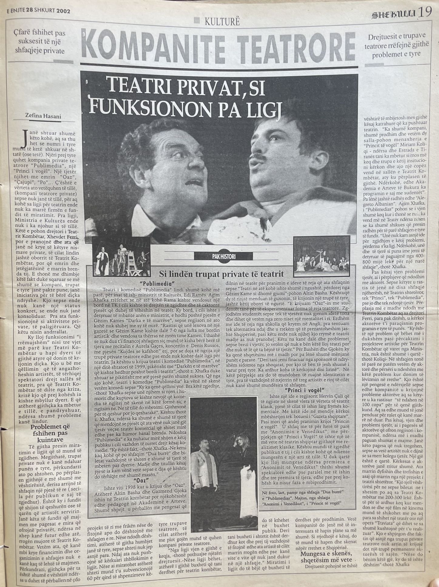 Dokumentim i prodhimit teatror të nismave të lira individuale dhe të kompanive private në vitet e Shqipërisë në tranzicion
