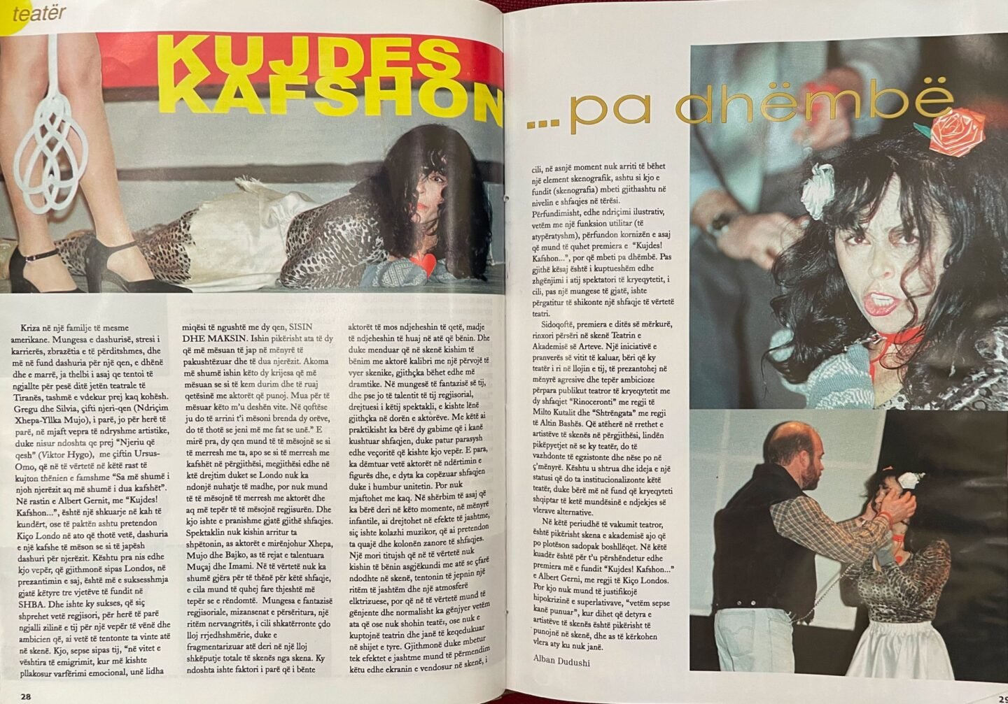 [11] Migena Hoxhalli. “Teatri tjetër që vjen nga Akademia e Arteve”, Koha jonë, shtator 2000.