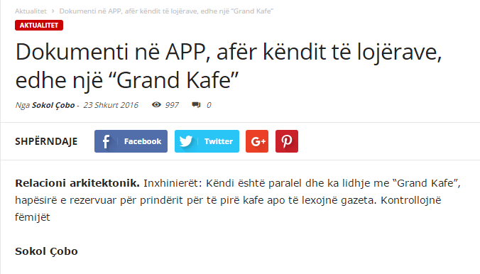 Gran Cafe Ardian Vehbiu 23 Shkurt 2016 Zbuloni më tepër nga Peizazhe të fjalës Pajtohuni, që të merrni postimet më të reja dërguar drejt e në email-in tuaj. Shtypni email-in tuaj… Pajtomë Shpërndaj Ndaj Ruaj