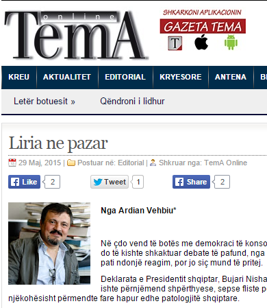 tema Ardian Vehbiu 30 Maj 2015 Zbuloni më tepër nga Peizazhe të fjalës Pajtohuni, që të merrni postimet më të reja dërguar drejt e në email-in tuaj. Shtypni email-in tuaj… Pajtomë Shpërndaj Ndaj Ruaj